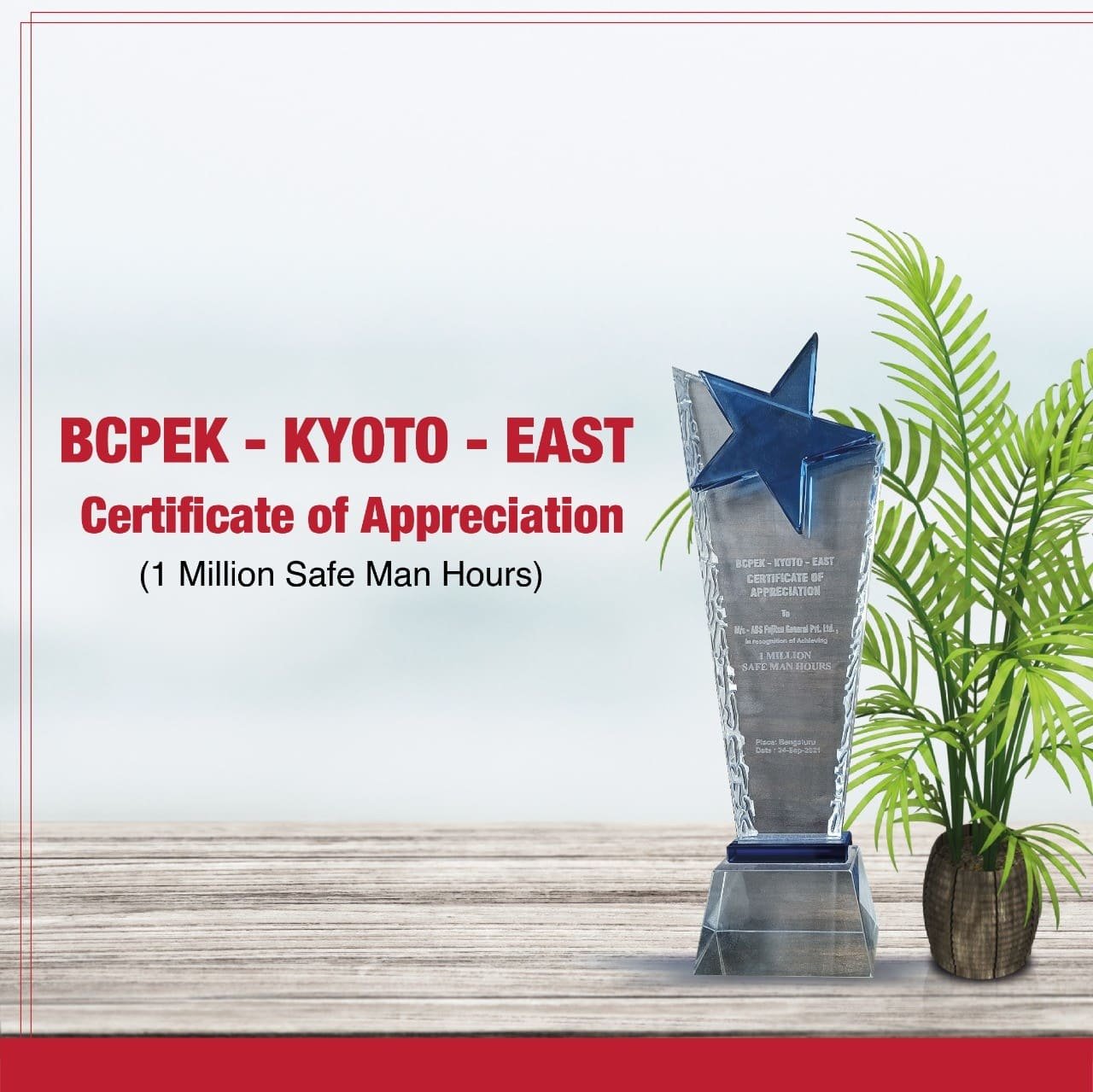 Another moment for celebration as our efforts are recognized! BCPEK - KYOTO, EAST appreciates 1 Million Safe Man Hours