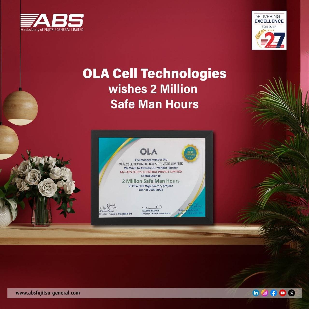 Recognition from OLA Cell Technologies Pvt Ltd is a reflection of our unwavering dedication to creating a safe work environment.